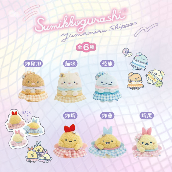 角落生物 炸豬排 恐龍 蝦尾 夢想成真 絨毛手掌玩偶 格紋打歌服 6選1