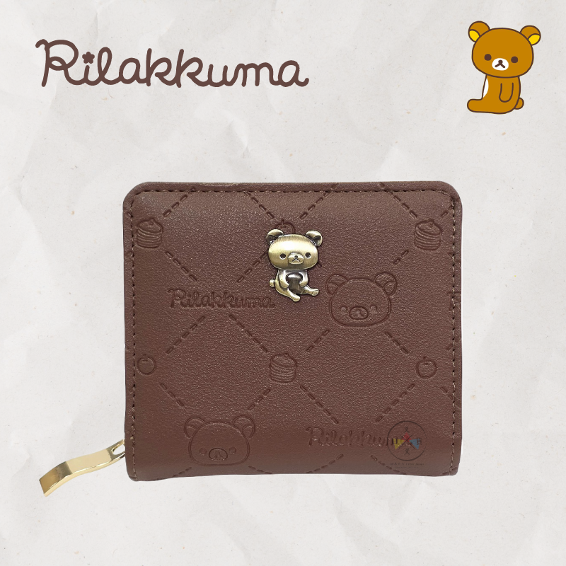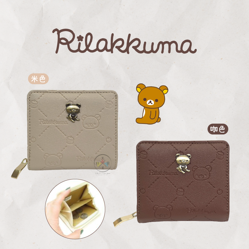 拉拉熊 懶懶熊 菱格壓紋 立體金屬牌 拉鍊 兩折短夾 零錢包 2選1