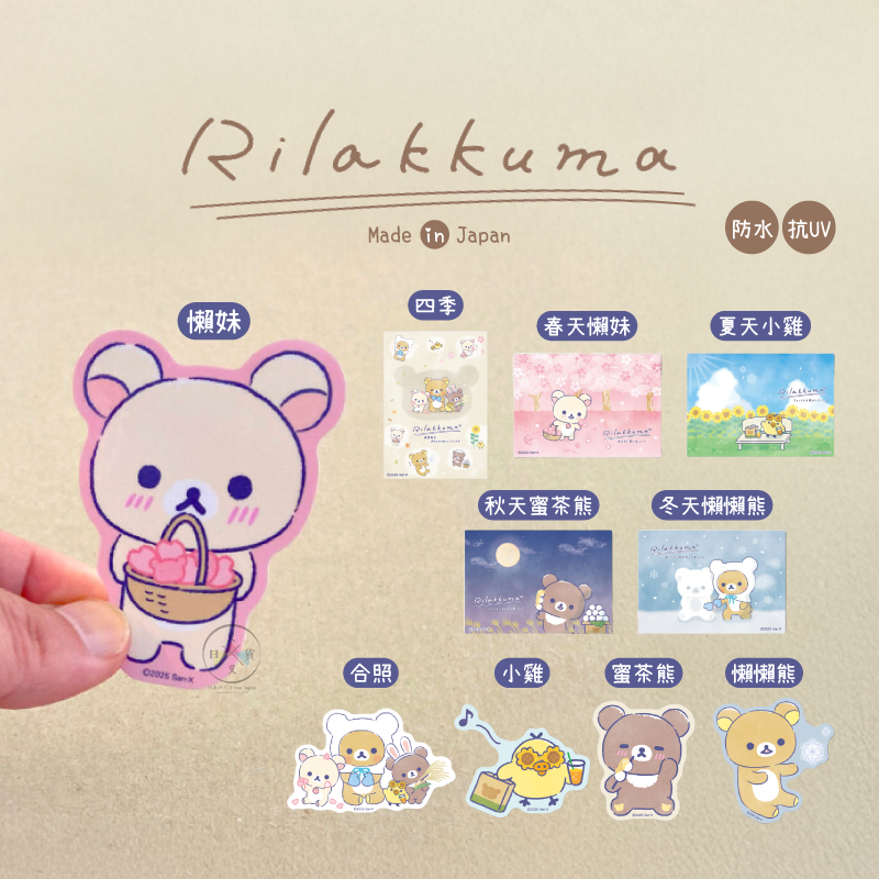 | 尺寸 | 四季, 春天懶妹, 夏天小雞, 秋天蜜茶熊, 冬天懶懶熊- 約6.8x4.8公分 |