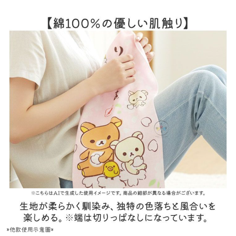 拉拉熊 懶懶熊 純棉 日式 單層紗布 手巾 毛巾 吸水速乾 34x90公分 書法漢字 日本製
