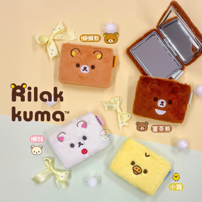 預購 拉拉熊 懶懶熊 懶妹 小雞 蜜茶熊 大臉絨毛刺繡 隨身鏡子 等倍放大 4選1